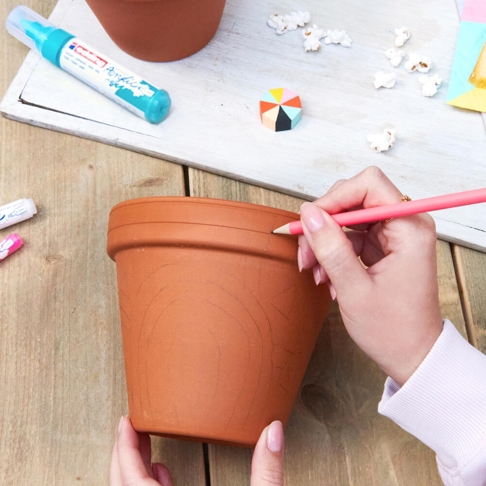 Zorg dat de bloempotten goed schoon, vet- en stofvrij gemaakt zijn en je ze vervolgens goed hebt laten drogen. Vetvrij maken kan het beste met ammoniakwater of alcohol.