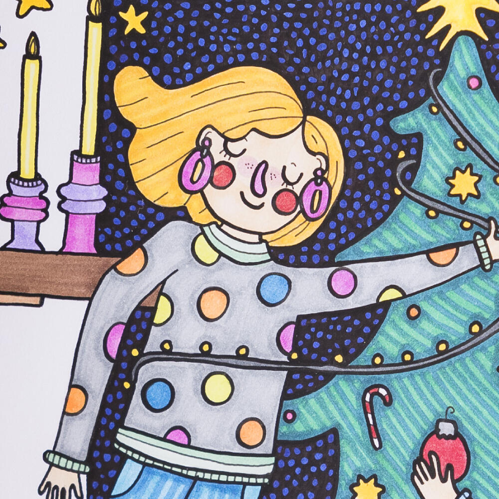 De inkt van alcoholmarkers geeft super heldere kleuren en je kunt prachtig spelen met licht en donker. Dat bewijst Chanine Hameetman, die voor ons deze feestelijke illustraties heeft gemaakt.