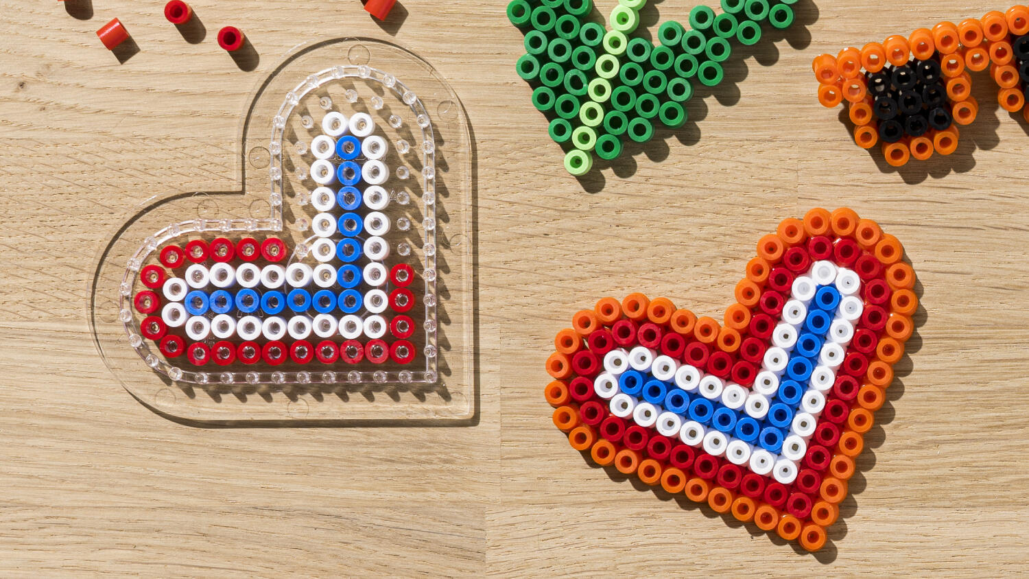- Hama Midi onderplaten - klein hartje, grote hexagon (voor de vlag) en groot vierkant (voor de rest)