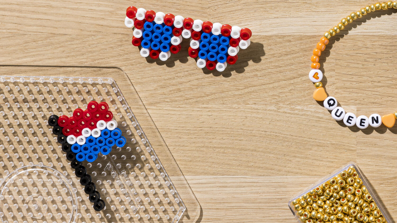 Strijk de kralen aan elkaar met een strijkijzer, leg daarvoor eerst een strijkpapiertje op de kralen. Oefen gelijkmatig druk uit tijdens het strijken en maak draaiende bewegingen. Laat het geheel na het strijken afkoelen tot je de vorm van de onderplaat af kunt halen en laat het daarna plat afkoelen (het liefst onder iets zwaars, zoals een boek).