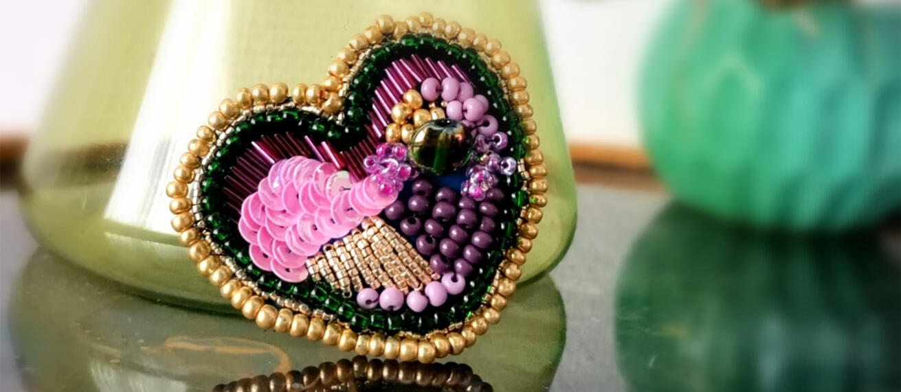 Deze broche is verrassend makkelijk om te maken en je hoeft er niet veel ervaring met het borduren van kralen voor te hebben. De stijl leent zich juist voor wat rommelig rijgwerk, dus durf fouten te maken!