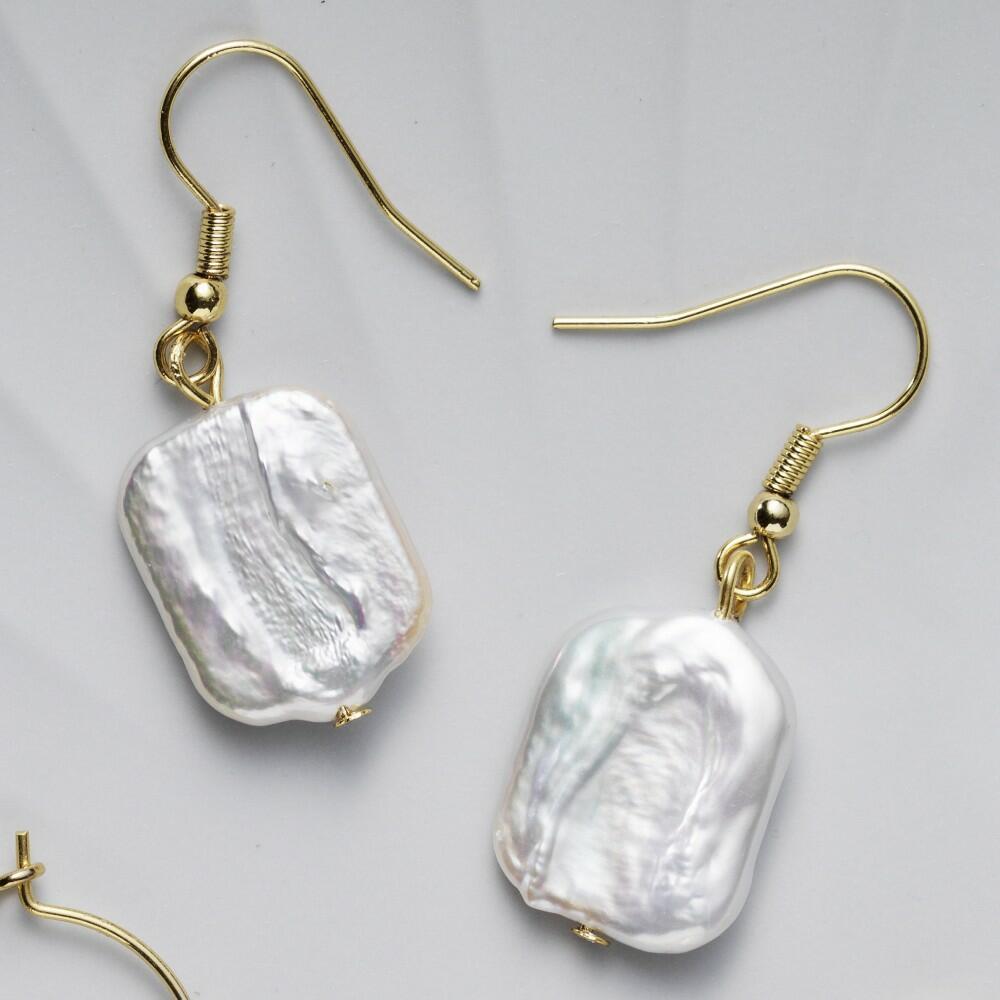 Deze maak je hetzelfde als een de creooloorbellen met grote parels, maar nu bevestig je er een oorhaakje en grote, platte vierkante parel aan.