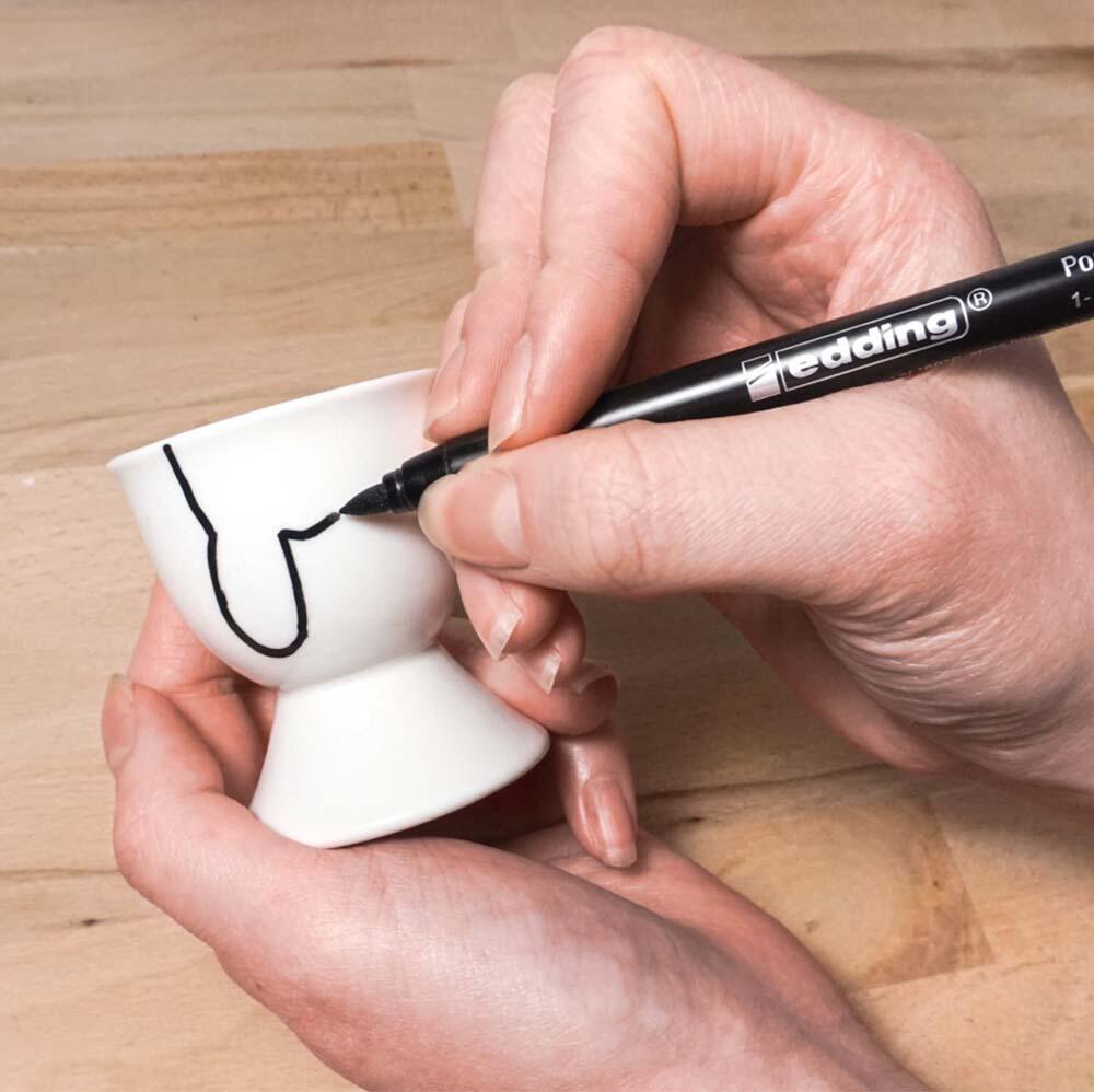 Dankzij de edding 4200 porseleinmarkers kun je makkelijk je eigen eierdopjes versieren voor Pasen!