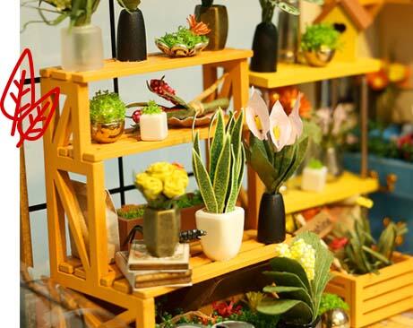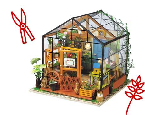 Geen groene vingers, toch een tuinhuis? Da’s voor jou geen vraagstuk, maar een uitdaging! Alles wat je nodig hebt zit in de set en veel onderdelen maak je zelf. Cathy haalt haar plantjes natuurlijk bij Emily’s Flower Shop, stopt onderweg voor een lekker ijsje bij de Ice Cream Station en sluit de dag af met een goed boek uit Sam’s Study. Allemaal setjes uit de Robotime DIY lijn!alle DIY huisjes