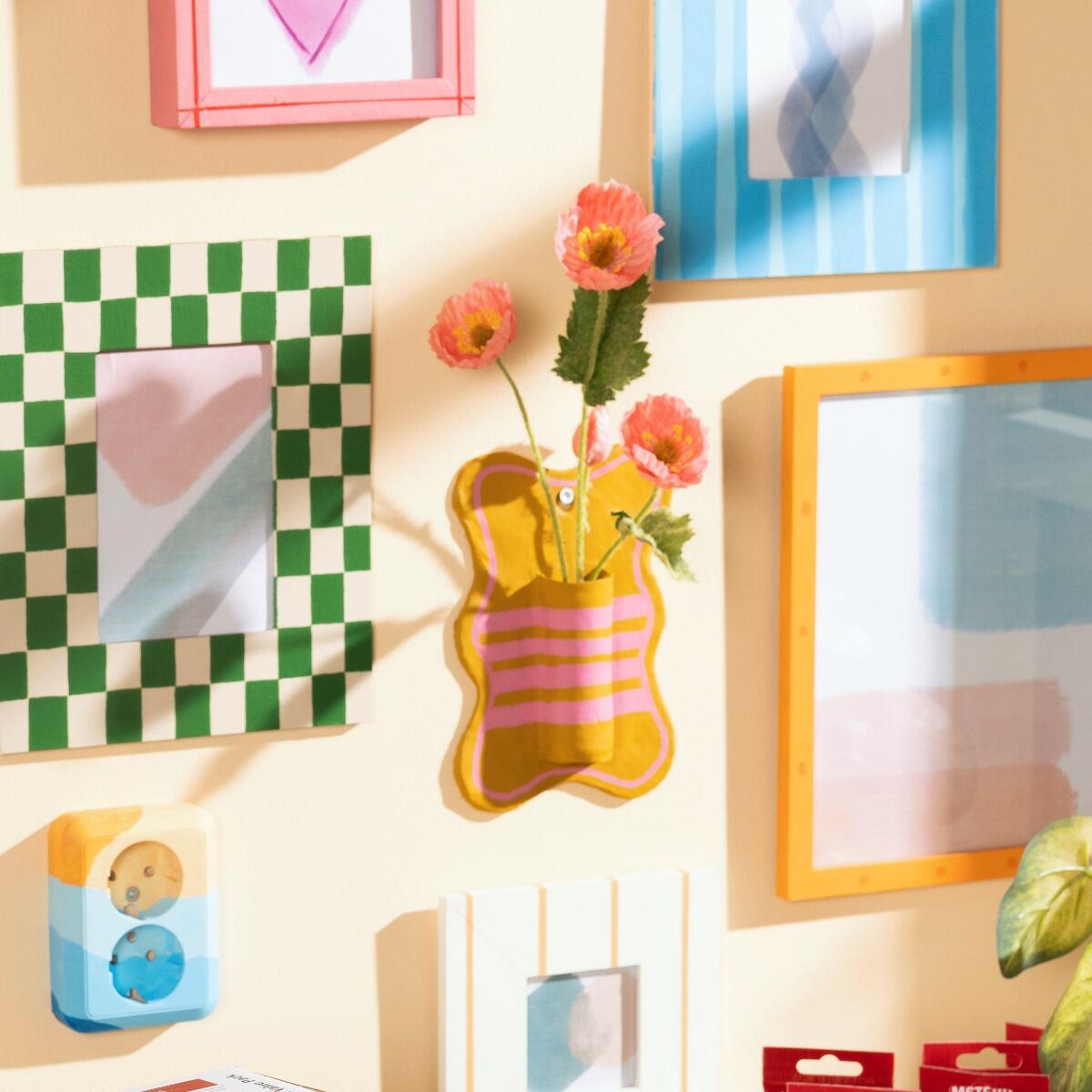 - Prik tot slot een gaatje bovenin de vorm, zodat je het vaasje straks aan de muur kunt hangen.