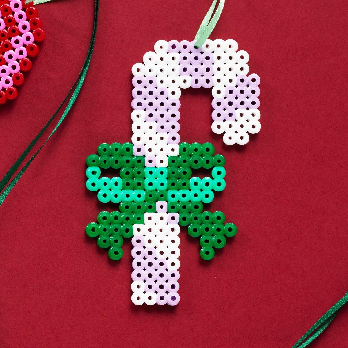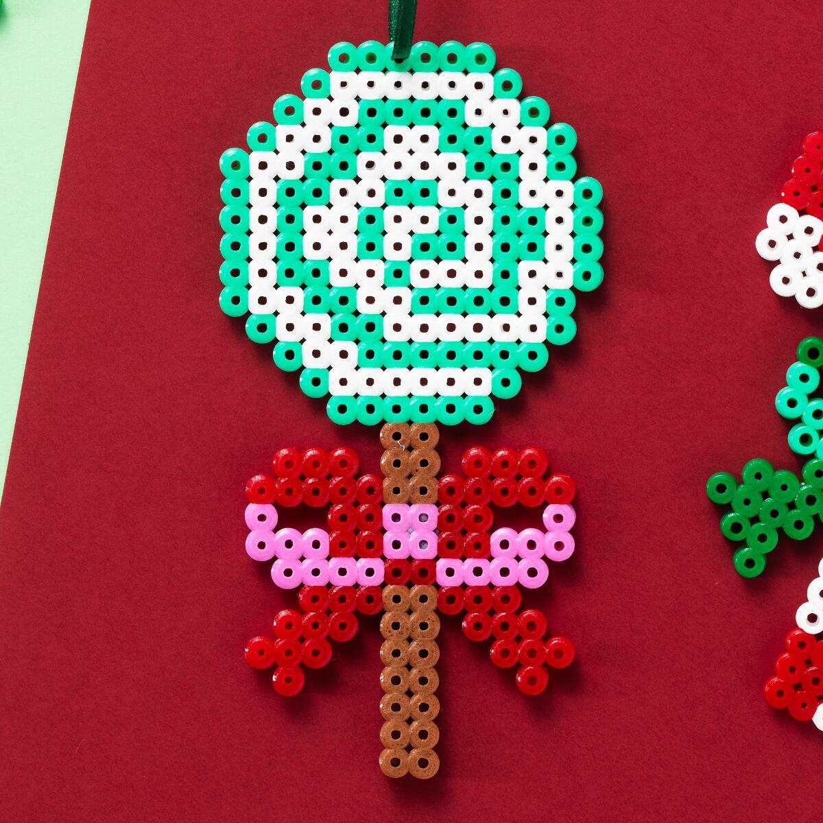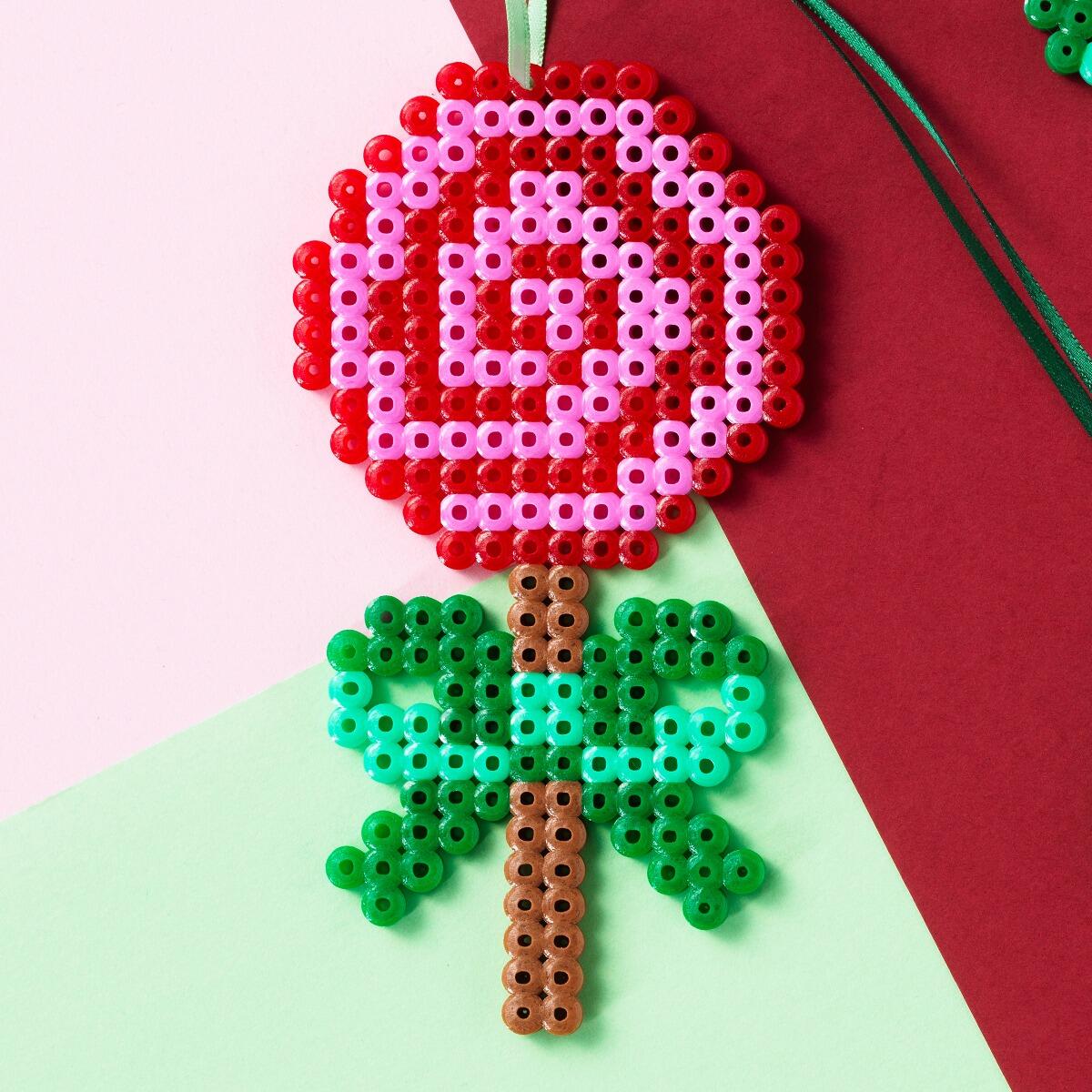 Knip een stuk decoratief koord af en steek het uiteinde door het bovenste kraaltje van het figuur. Knoop de uiteindes aan elkaar om er een lusje van te maken.
